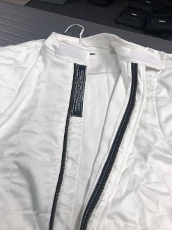 The jacket is available in white with our Standard logo colors on the sleeves and the back.